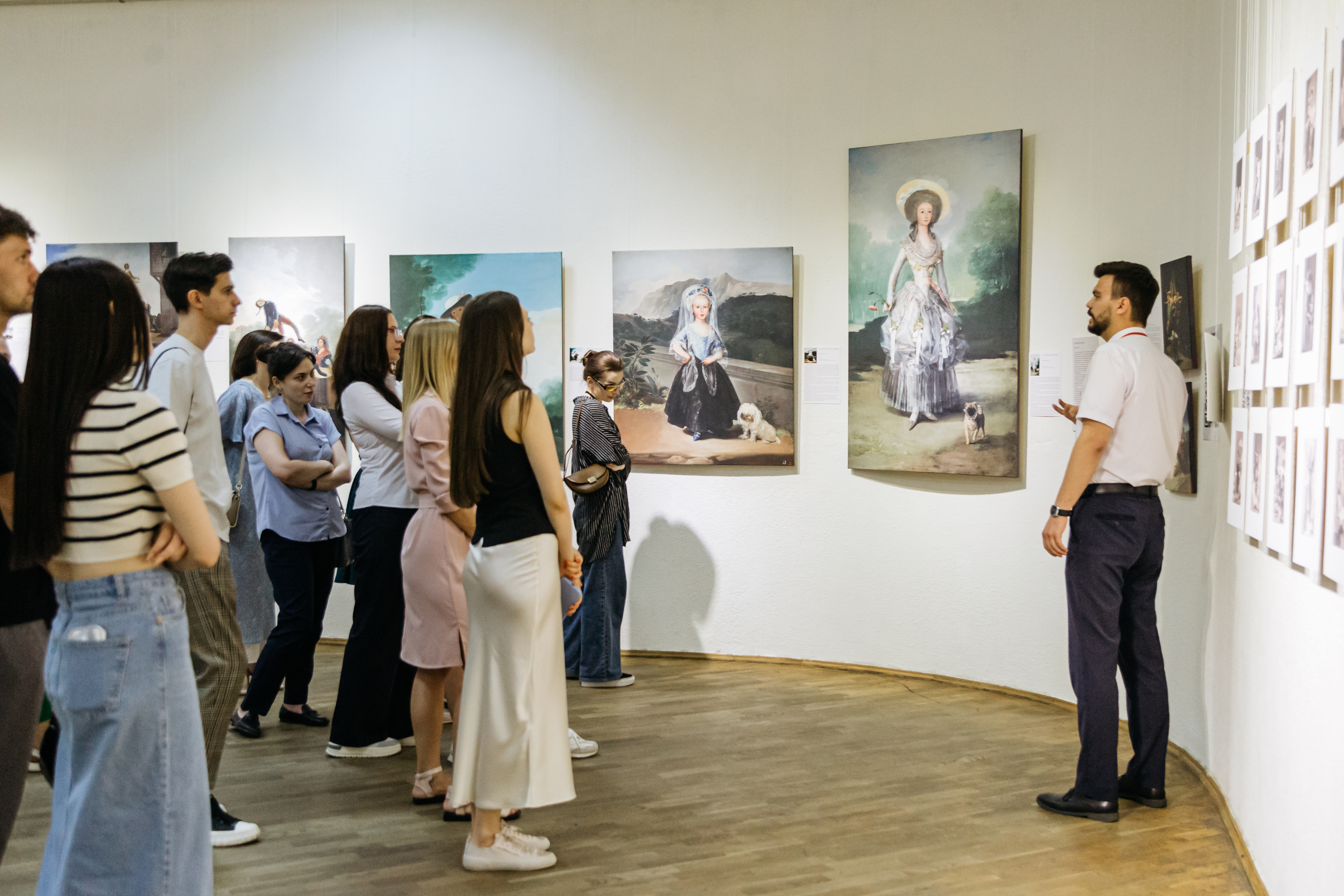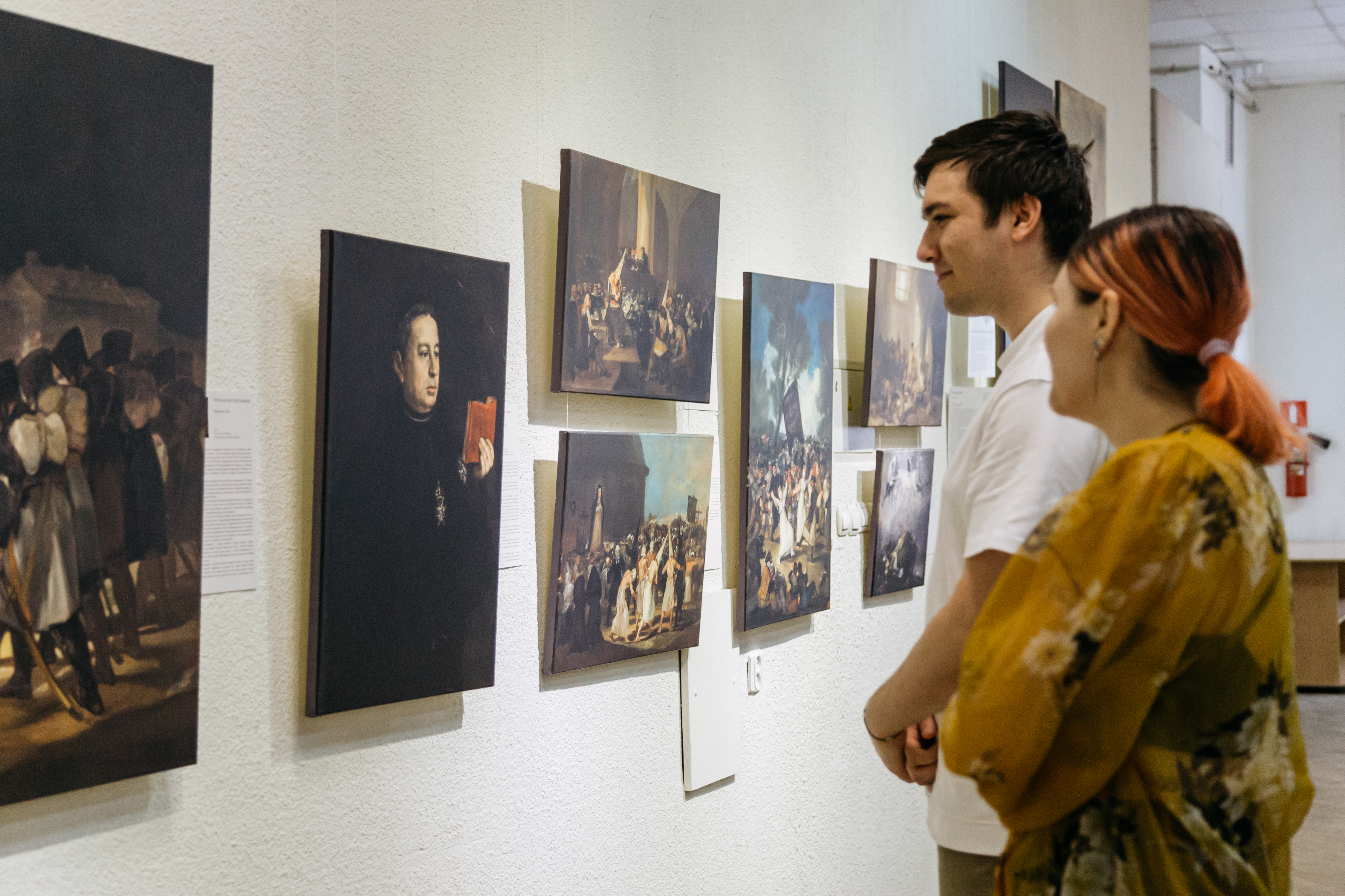 В экспозиции представлены более 60 полотен и 1 знаменитый цикл офортов испанского художника 19 века Франсиско Гойя. На нашей выставке у посетителей будет невероятная возможность окунуться в мир творчества автора и увидеть развитие его стиля от ранних работ до более поздних, глубоких и загадочных.